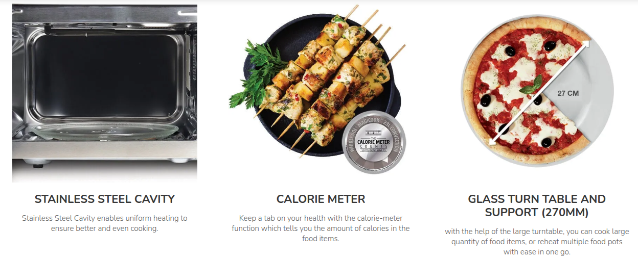 Powered by 900 watts and offering 10 adjustable power levels, the Magicook Pro ensures precision in every meal. Crafted in a premium black finish, it adds a sleek and elegant touch to your kitchen décor.
