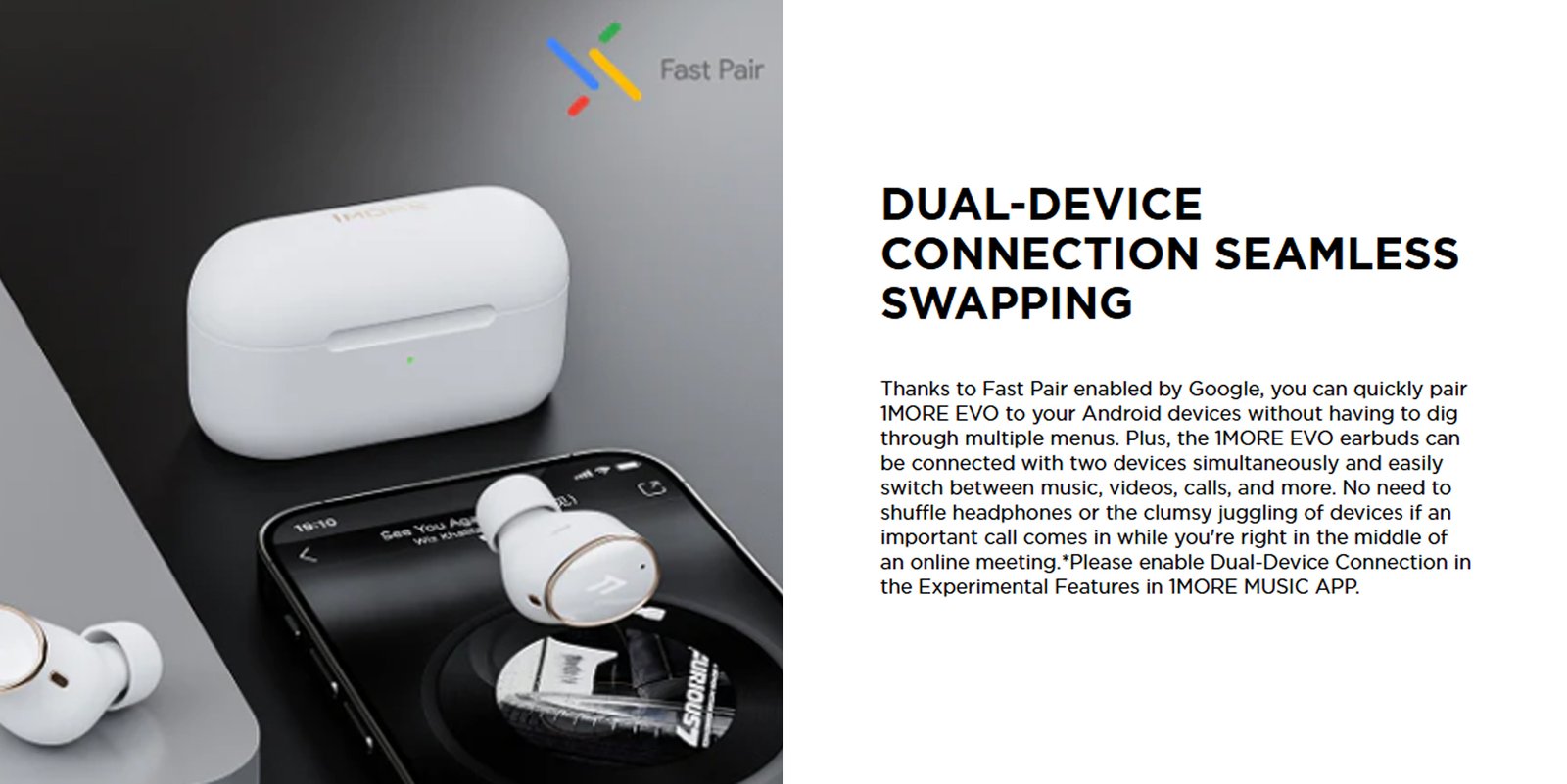 Compact and lightweight, each earbud weighs only 5.7g, and the sleek charging case is easy to carry. Whether you’re looking for premium TWS in Bangladesh, ANC earbuds, or wireless earphones with long battery life, the 1MORE EVO is the smart choice.