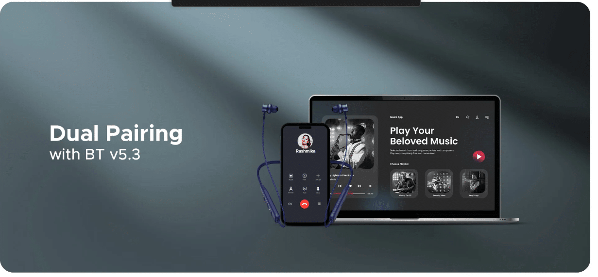 Equipped with 10mm dual dynamic drivers, the Rockerz 110 produces deep bass and clear vocals for an immersive listening experience. The dual pairing feature allows you to connect two devices simultaneously, making it easy to switch between your smartphone and laptop.
