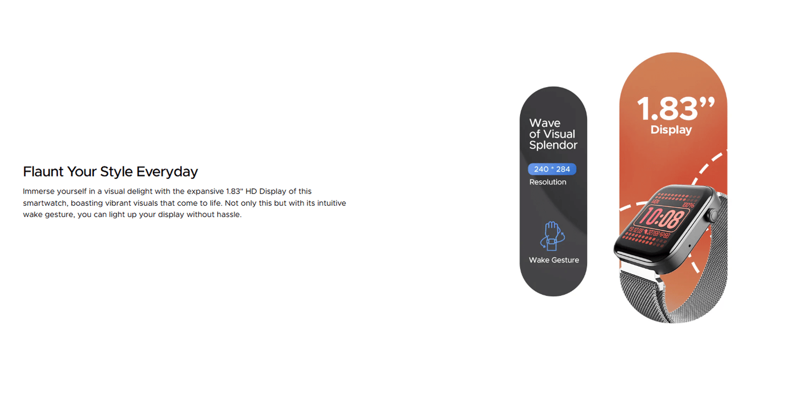 The 1.83-inch (4.64cm) HD display offers sharp visuals and smooth touch response, making navigation effortless. With Bluetooth Calling, you can make and receive calls directly from your wrist—perfect for busy professionals, students, and fitness lovers in Bangladesh who are always on the move.