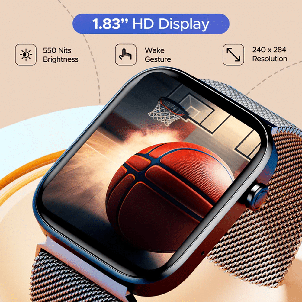 The 1.83-inch (4.64cm) HD display offers sharp visuals and smooth touch response, making navigation effortless. With Bluetooth Calling, you can make and receive calls directly from your wrist—perfect for busy professionals, students, and fitness lovers in Bangladesh who are always on the move.
