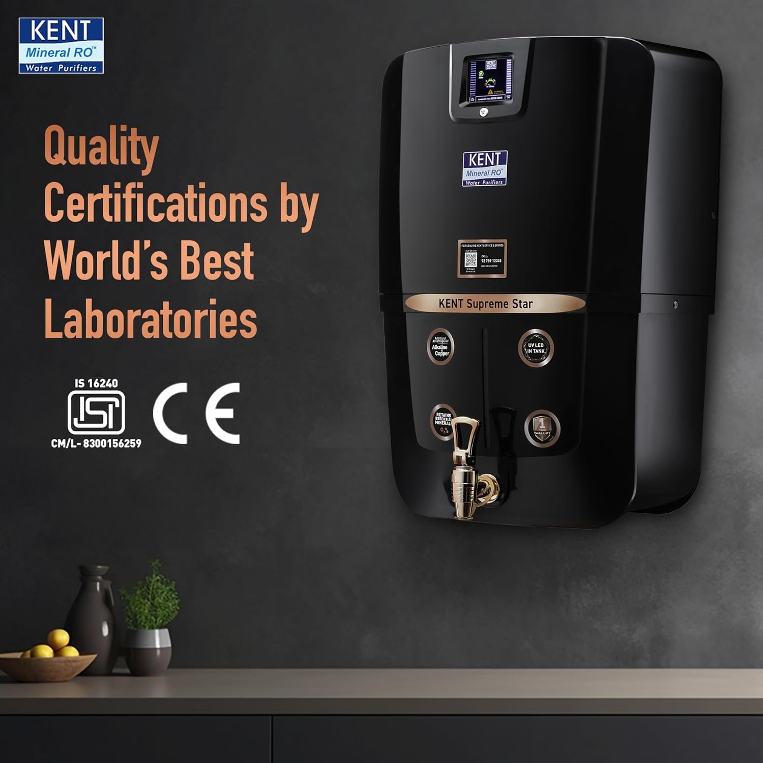 The KENT Supreme Star stands out with its multiple purification process, combining RO + UV + UF + Alkaline + Copper + TDS Control to ensure 100% pure water. Whether your home receives supply water, deep tube well water, or mixed water sources, this purifier effectively removes bacteria, viruses, dissolved impurities, heavy metals, and harmful contaminants. At the same time, it retains essential natural minerals, giving you safe and balanced water every time.