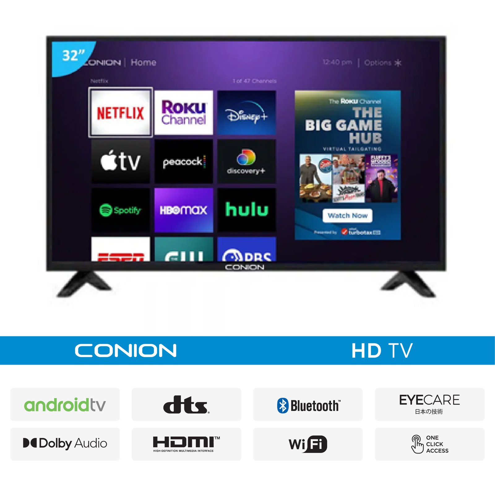 Conion LED 32″ HD BE-32U820S (Smart) LED TV flaunts its cutting-edge Eye care Technology that’ll keep your eyes safe from excessive TV viewing. Double glass protection gives the TV unprecedented durability and the unique and innovative stand along with the metallic finish gives the TV a look you can’t take your eyes off. Wi-Fi features enable you to access the internet and download android apps. Some key features of Conion LED 32″ HD BE-32U820S (Smart) LED TV :