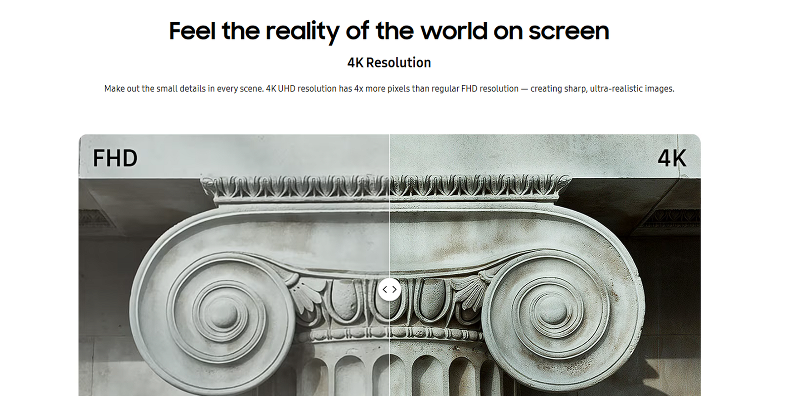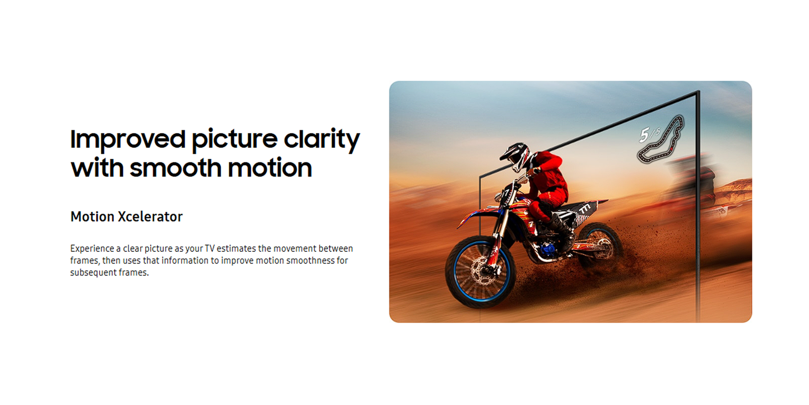 This TV features Object Tracking Sound (OTS Lite) and a 20W 2-channel speaker system, providing immersive and clear audio for movies, sports, and music. With Q-Symphony support, it can seamlessly work with Samsung soundbars to deliver a cinema-like experience. The Motion Xcelerator technology ensures smooth action sequences, while AI 4K Upscaling enhances lower-resolution content to near-4K clarity. Gamers will appreciate the Auto Game Mode (ALLM), which optimizes the picture and reduces lag for faster, more responsive gameplay.